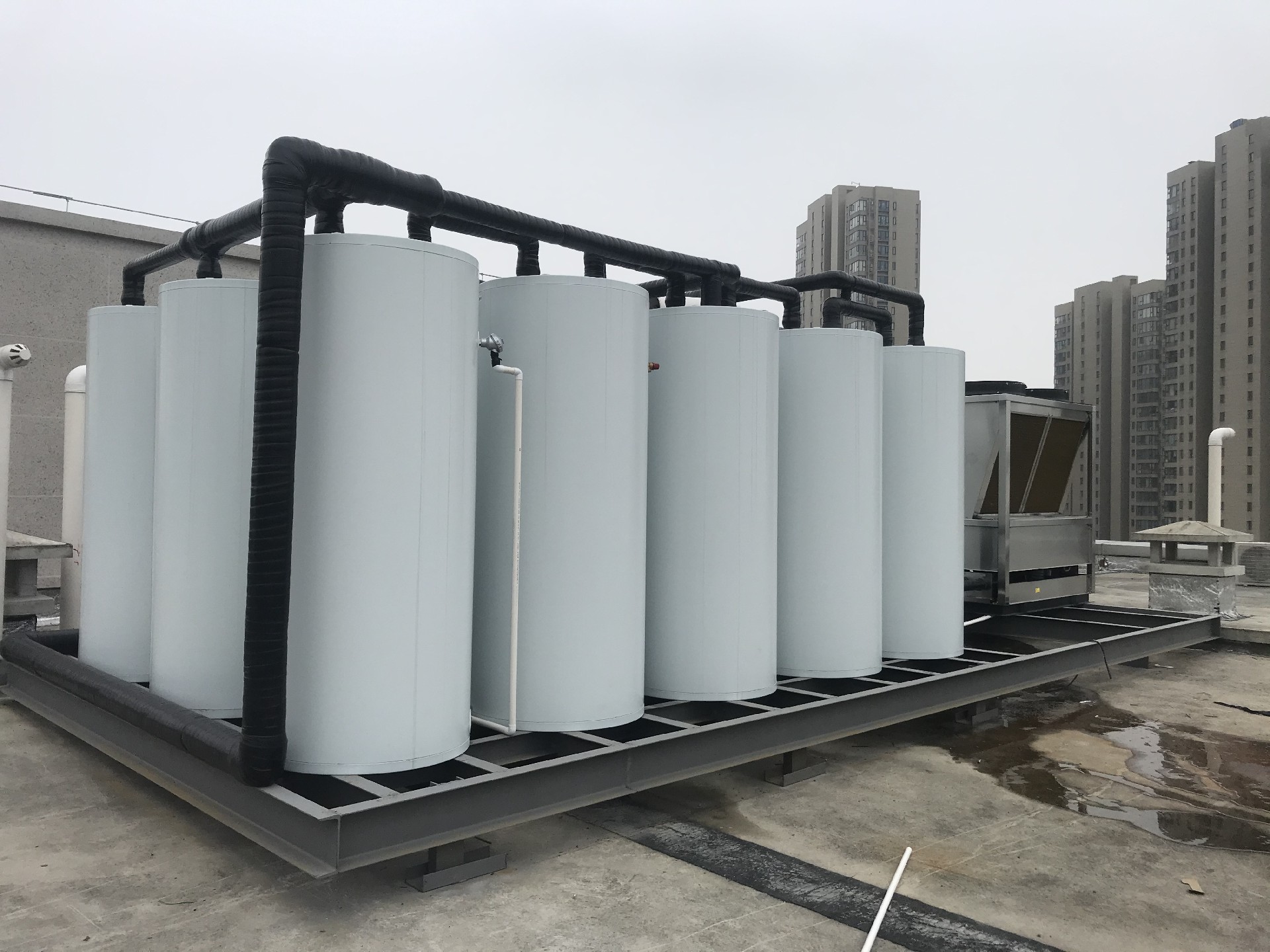 杭州未來里精品酒店項目設計用水量15噸,配備2臺KFXRS-42II主機,2個加熱水箱,13個儲熱水箱。